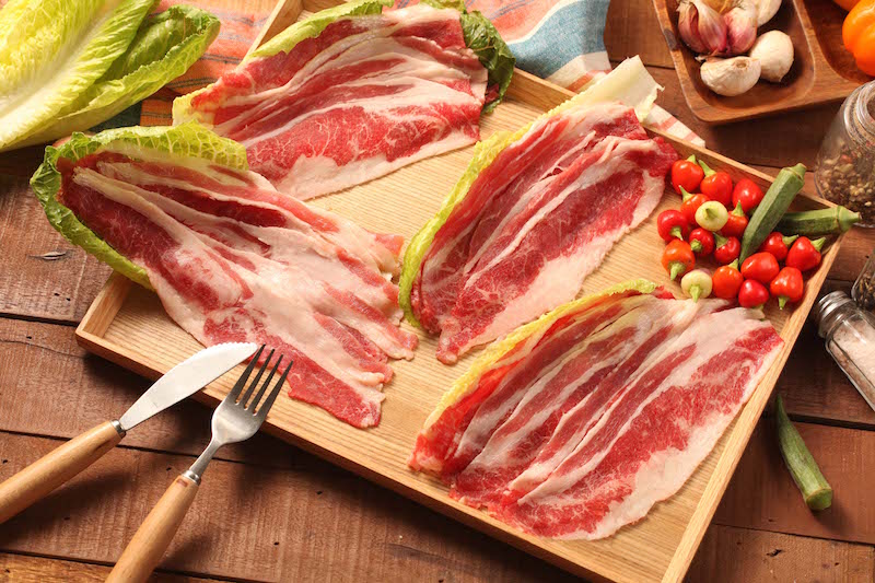美國霜降牛五花燒烤片取自牛的胸腹肉,瘦肉中帶有油脂讓吃起來的口感不柴不膩,除了適合作為火鍋肉片,也可用來燒烤或做成香嫩滑口的牛肉丼飯。