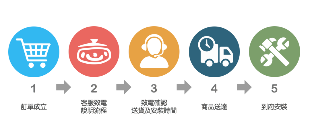 2. 愛料理將安裝資訊提供原廠,後續將由原廠客服主動聯繫確認「送貨時間」及「安裝時間」