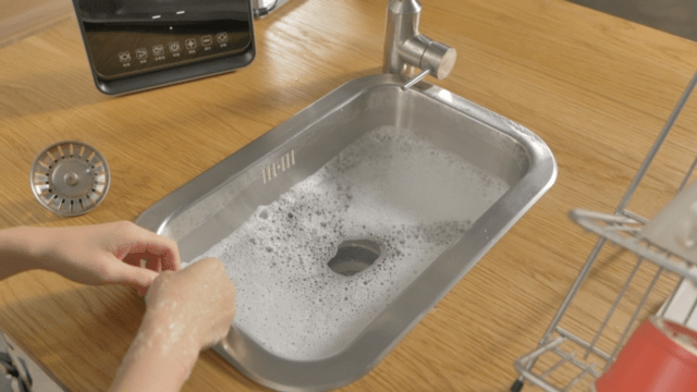 按照正確的步驟,在清洗過程油污會乳化分解,所以不必擔心碗盤會重複污染!