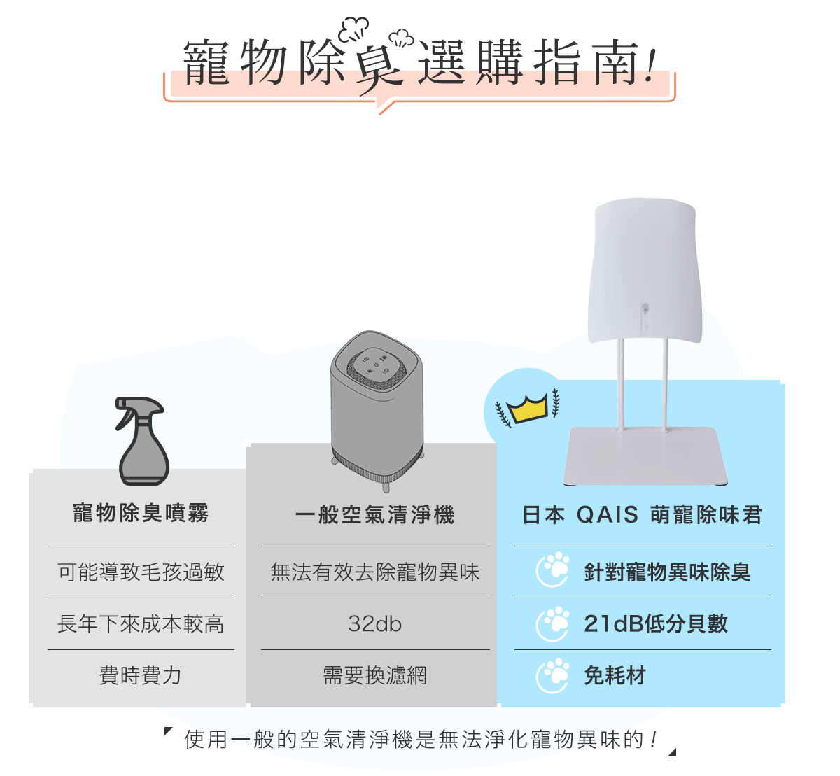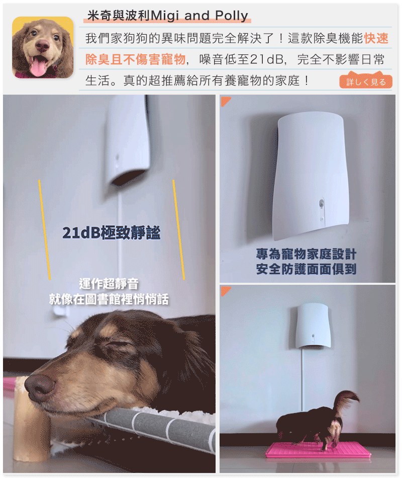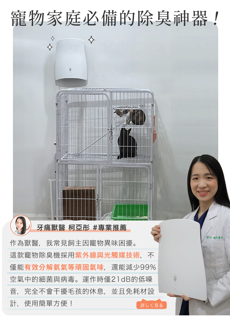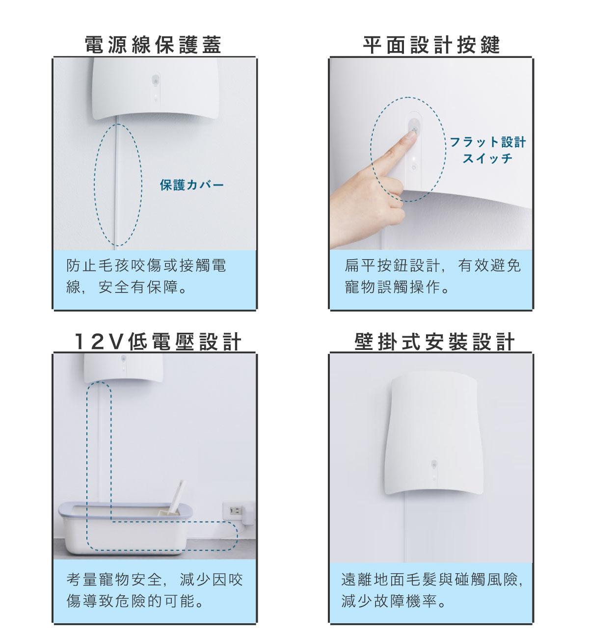 採用「紫外線 × 光觸媒」的獨特除臭技術,分解去除有害物質,不釋放臭氧或化學物質除臭方法即可抑制細菌、病毒和引起的異味,家中不再充滿寵物異味!