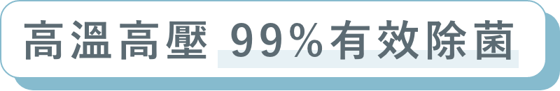 - 高溫高壓,99% 有效除菌