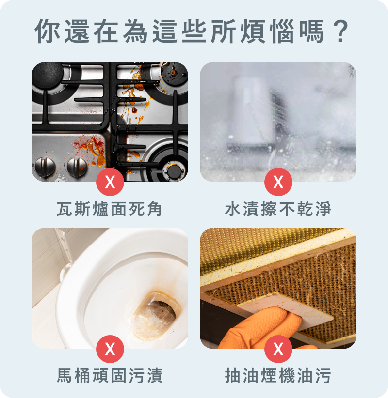 可加強使用於衛浴設備、浴室磁磚、牆面縫隙、油垢餐具,不忽略任何清潔死角。
