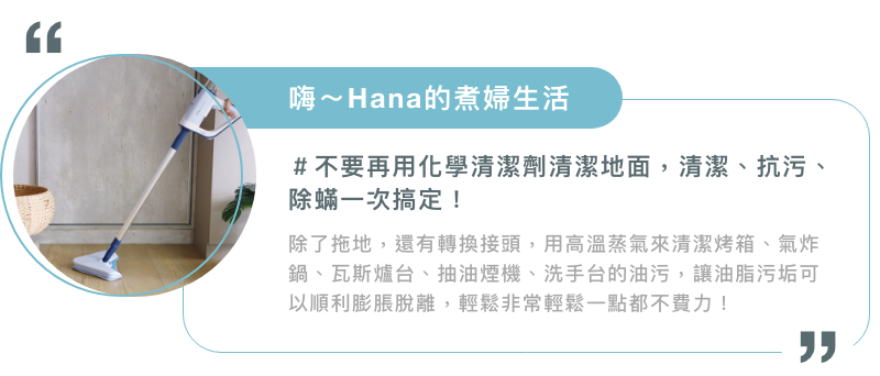 用清水征服頑固污垢,採用高溫高壓蒸氣,可滲入深層縫隙,不需化學清潔劑,輕鬆溶解污垢,安心不殘留;250ml 可拆式水箱,簡單更換加水,長時間使用也沒問題!