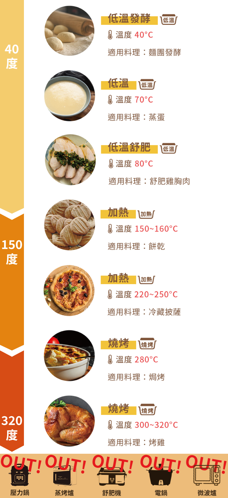擁有低溫舒肥、高溫烘烤等多項功能!