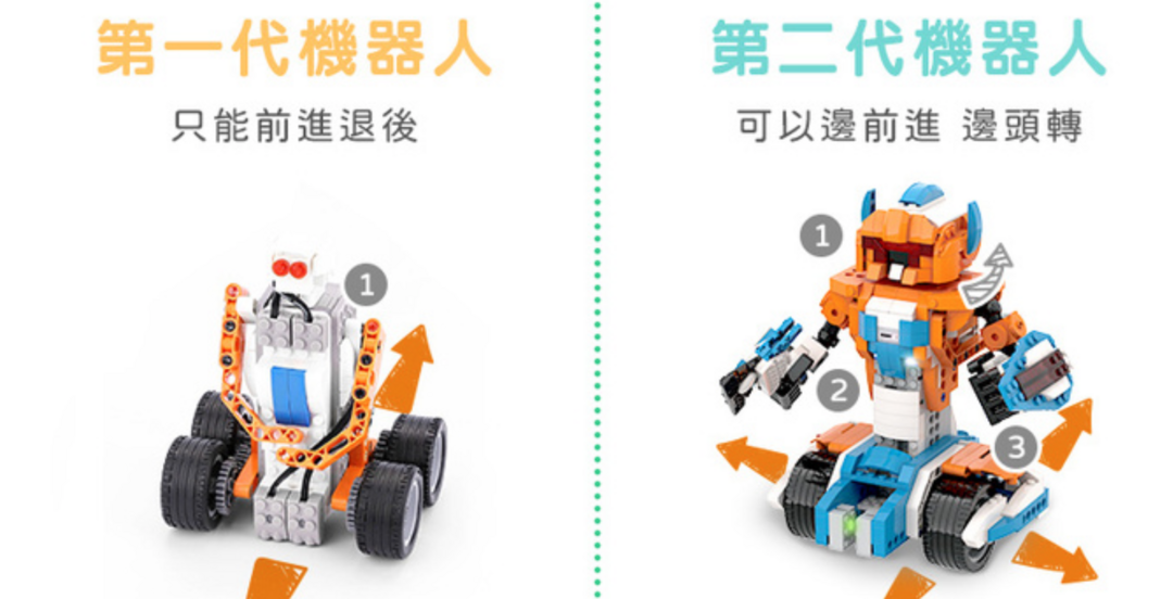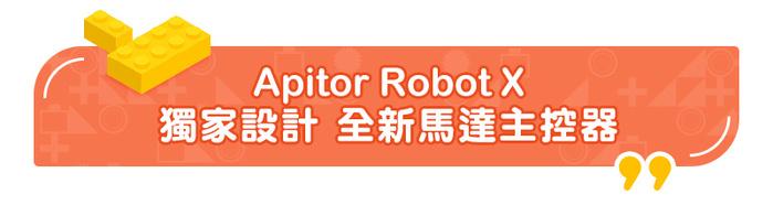 第二代 Apitor Robot X 的全新設計,馬達數量提升至 3 顆,不只提升積木運作的速度,第三顆馬達更像是機器人的第三支手、賽車的第三支腳一般,可以有更多樣的玩法與變化。