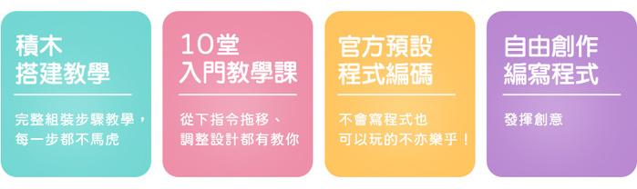 從搭建積木、訓練手眼協調與空間感的「入門」等級,到連線藍芽、控制積木移動的「中階」,以及自己編寫程式、創造不同玩法的「高階」,陪著孩子慢慢進步成長,是一款真正能夠從小玩到大的玩具。