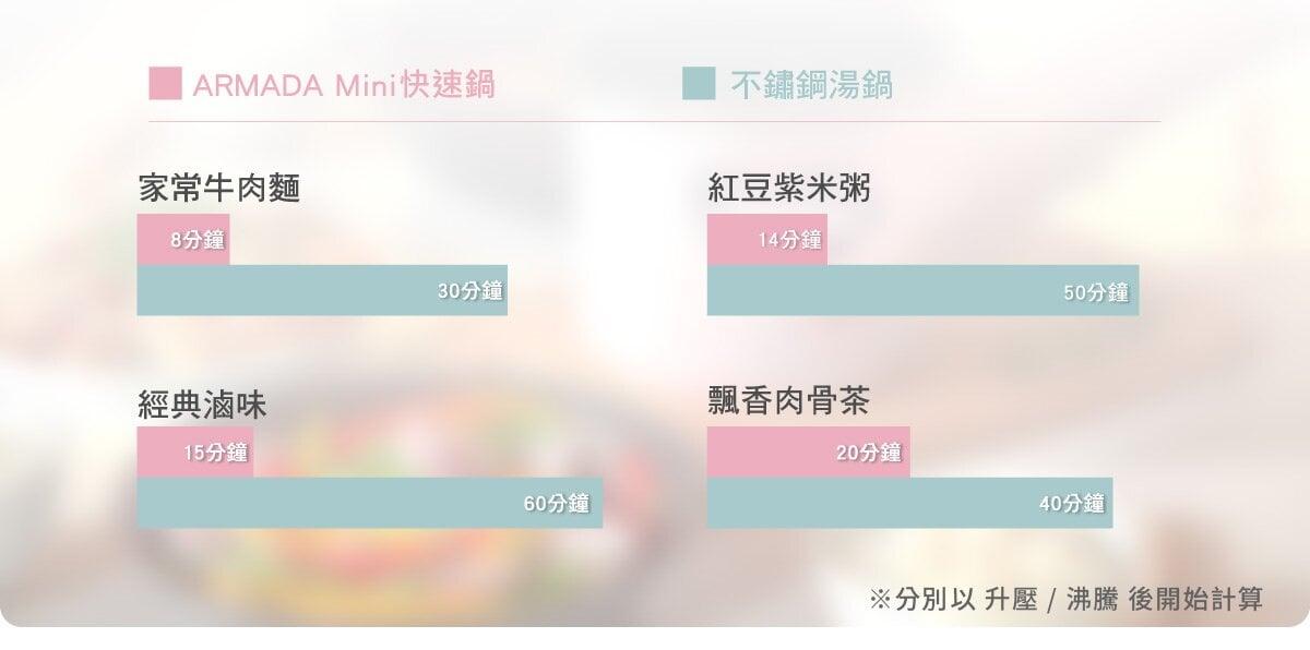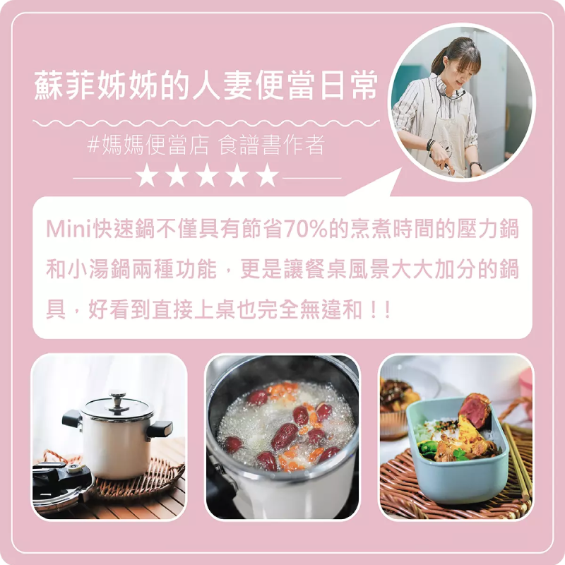 貼心提醒:使用 Mini 快速鍋烹煮,料理速度可能會因食材份量、種類、而有所不同。