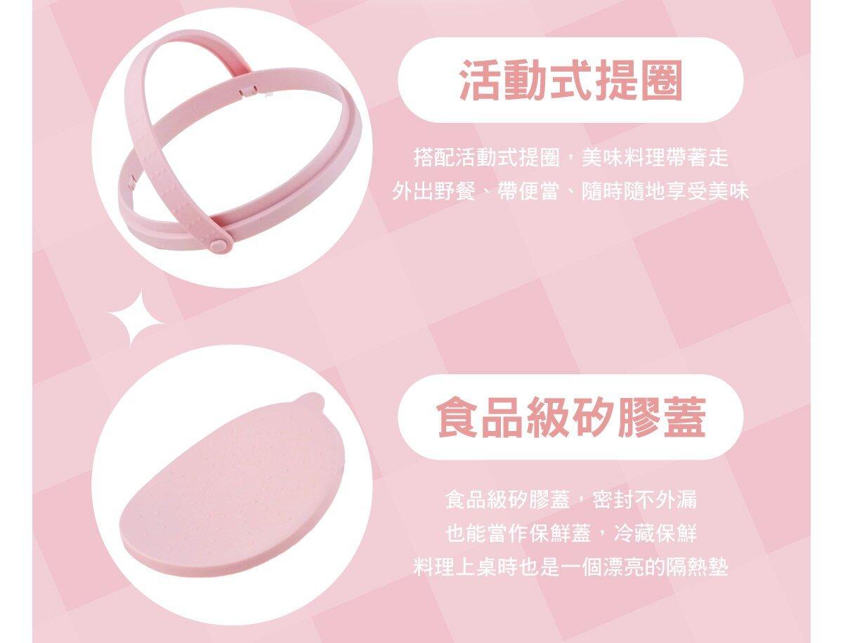 食品級矽膠蓋,密封保鮮不外漏,外出式提圈美味帶著走,適用各種爐具,使用 IH 爐也沒問題。
