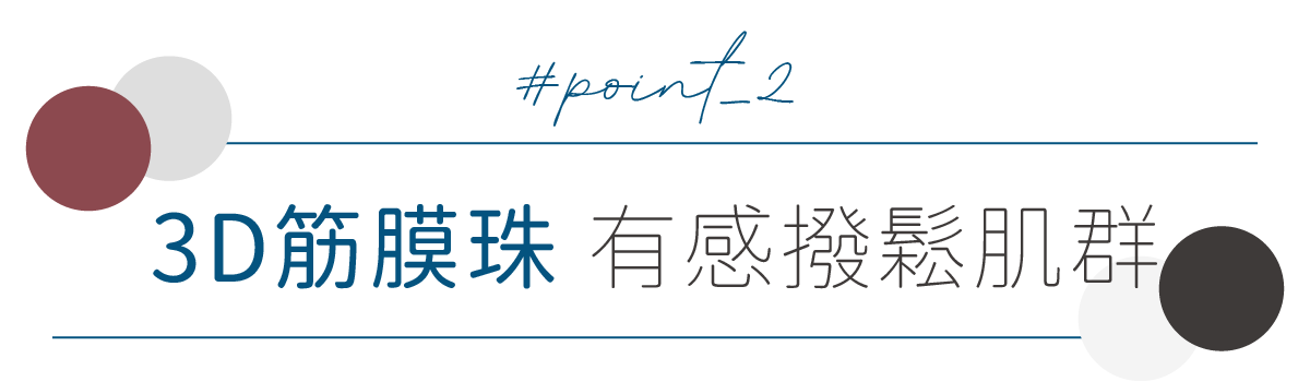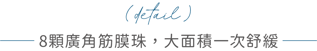 8 顆 3D 環繞式廣角溫潤筋膜珠,深入筋膜肌肉群,廣角揉壓每個穴位,有感撥鬆背脊臀肌。