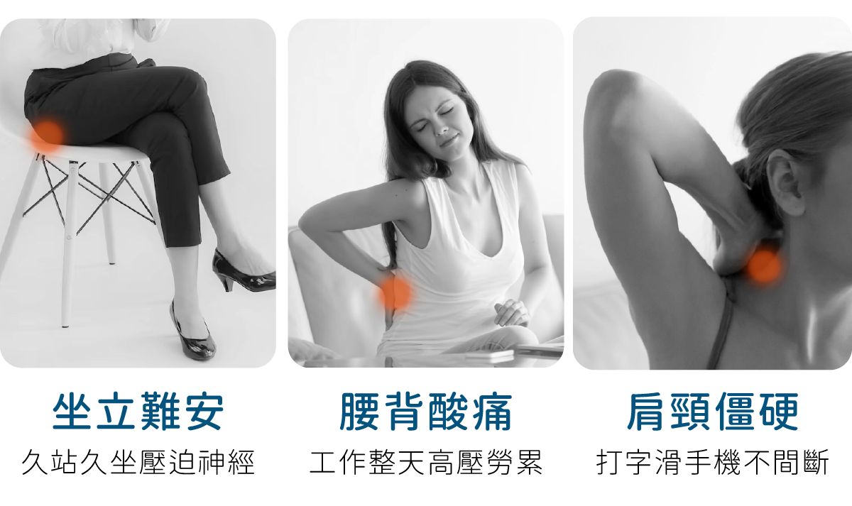 一台包辦按摩肩頸、腰部和臀部,放鬆身體一機到位,多用途體積小,輕鬆按摩好收納。