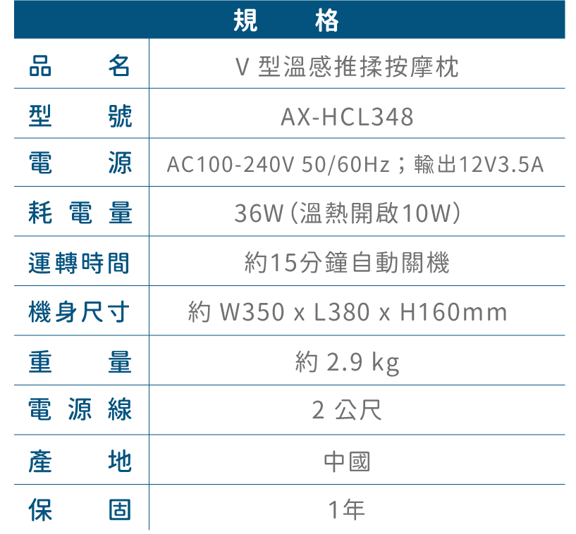 品名:日本 ATEX|V 型溫感推揉按摩枕
