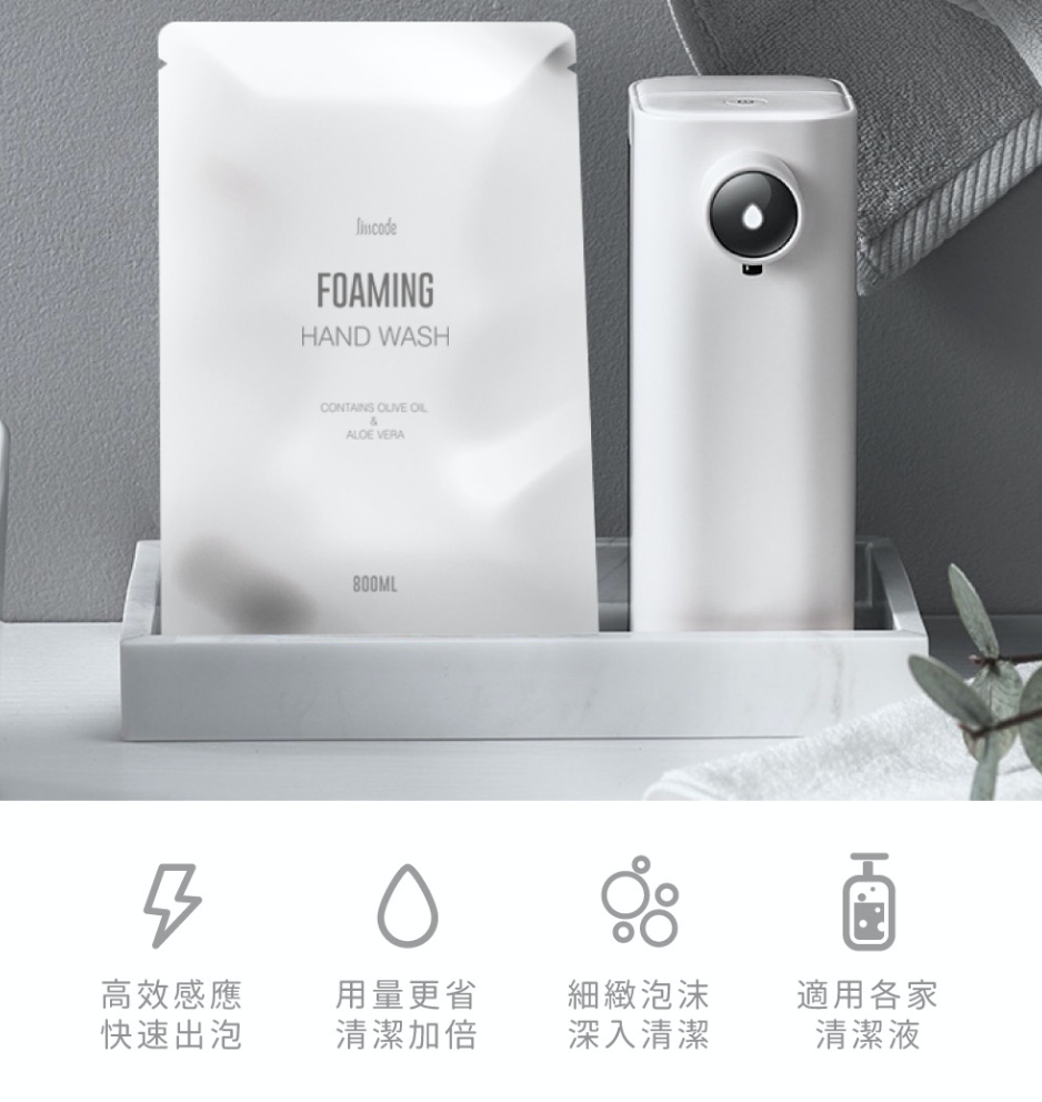 紅外線自動感應,免接觸快速出泡,不沾油膩與細菌!計時 15 秒閃爍設計,養成洗手好習慣,有效帶走髒污;大口徑瓶身,輕鬆補充不限品牌,手部、碗盤等清潔液皆可使用;節能省電,續航持久,使用時間可達半年。