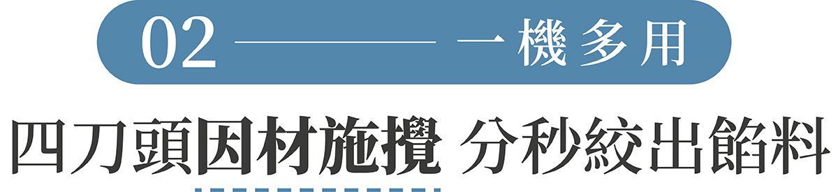 ▮ 絞肉刀:20,000RPM 搭配絞肉刀頭,輕鬆絞打出細膩的生鮮肉餡,從此跟手動剁餡說掰掰!