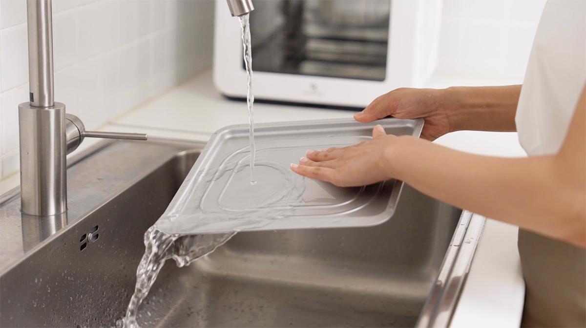 烤箱配件如烤盤、烤架,使用後可輕鬆清洗,不需擔心烤盤上殘留油膩髒污 ; 烤箱內膽為不鏽鋼冷卻後可拿抹布清潔擦拭。