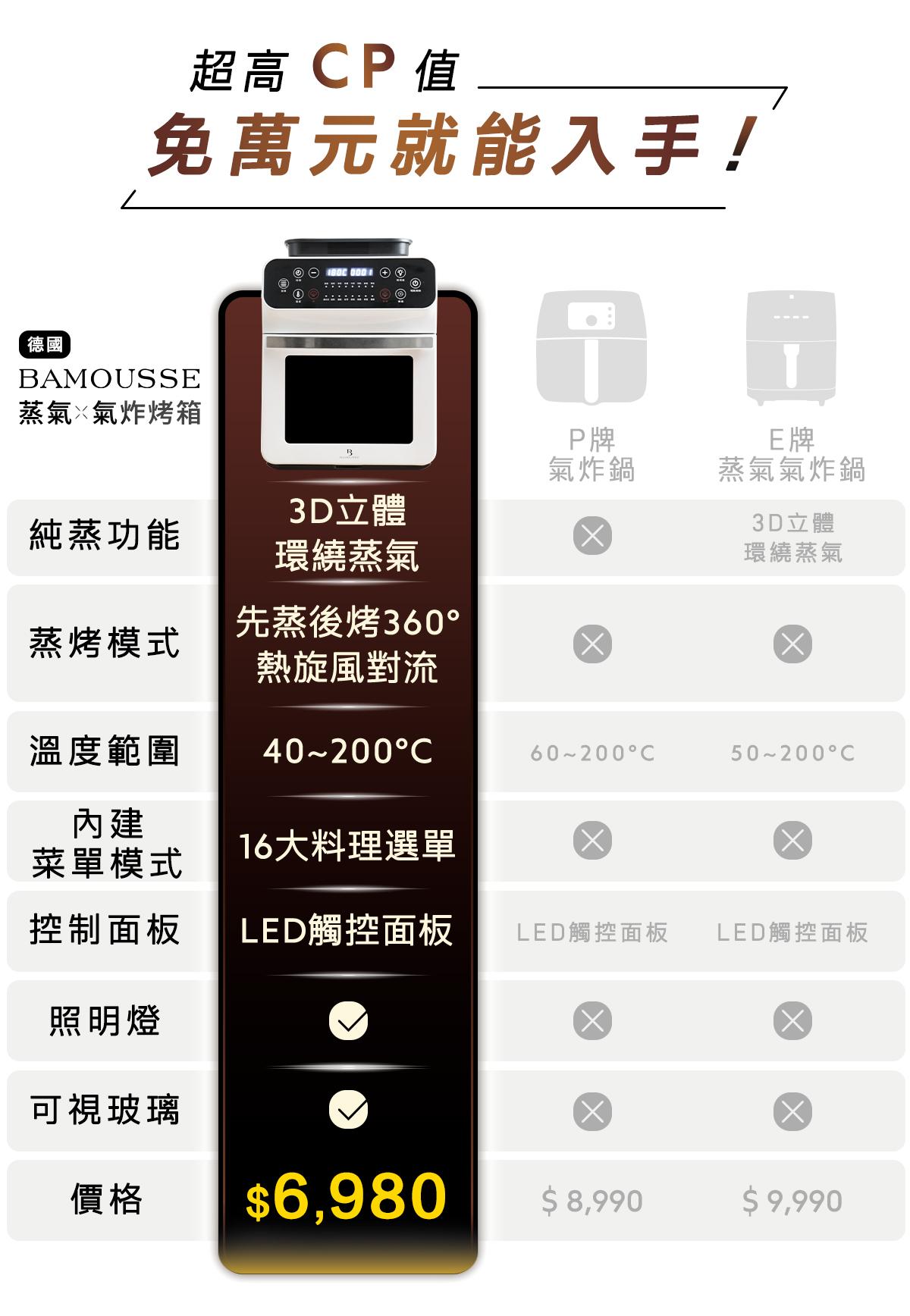 品名:德國 BAMOUSSE 蒸氣氣炸烤箱