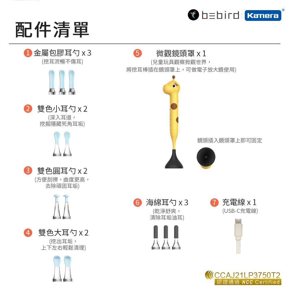 專為孩子設計的挖耳棒,可愛長頸鹿造型,適合耳道的挖耳溫度,使用 3.5mm 內徑柔軟蛇形鏡頭,看清耳內影像畫面,無論什麼角度,都能精準挖耳,平常還能將挖耳棒插在鏡頭罩上,做電子放大鏡使用!