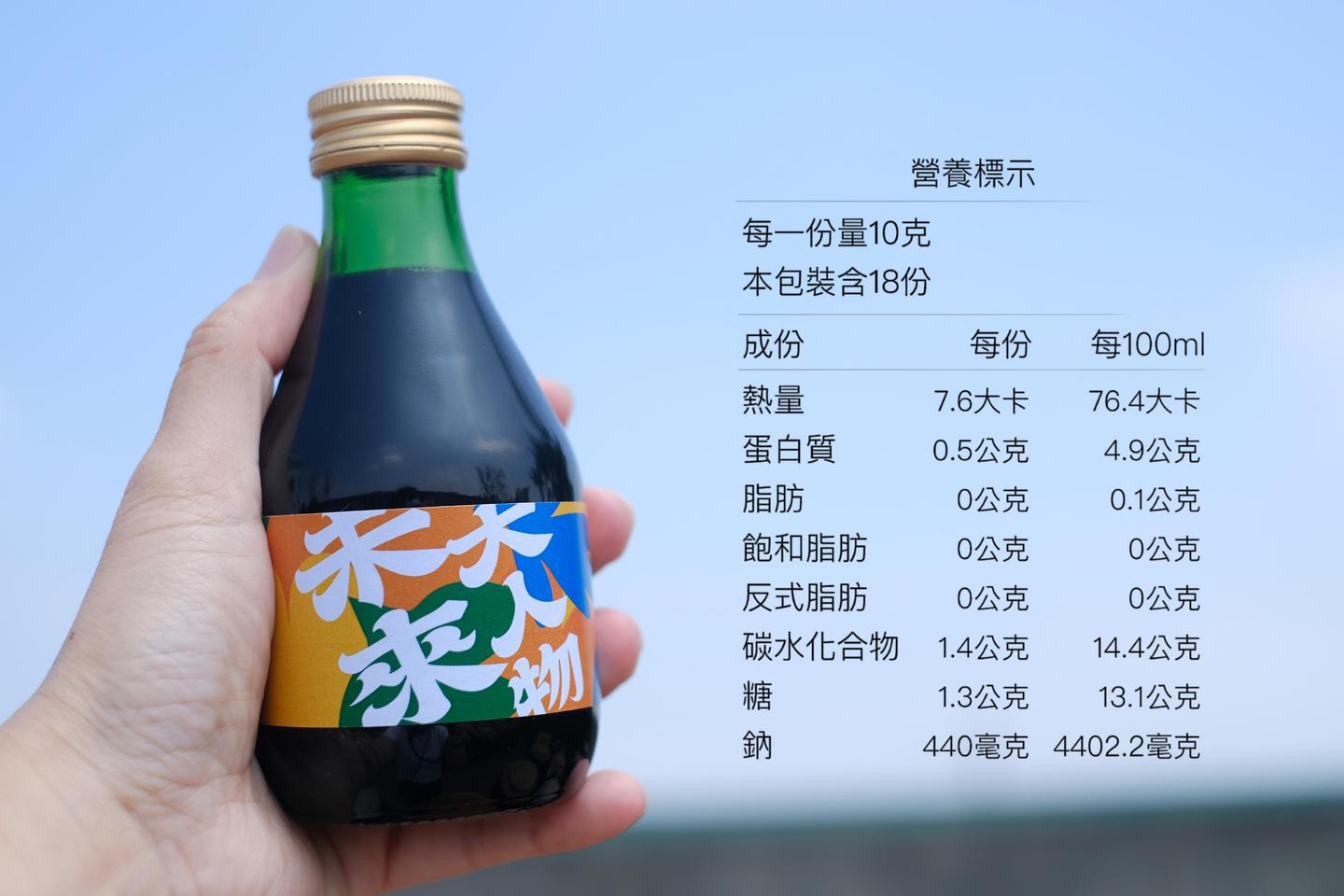 從製麴、下豆、釀造、柴燒、裝瓶都 100% 手工製造,醬油以乾式與半水釀造混搭比例而成,需要歷經 16 道工序、 180 天以上的日曬。純素製作,無添加物,釀造過程中手工將鹽粒剔除,藉以降低鹽度,特製出鹹度與甜度適切的比例,既可沾食、也可醬滷,滑順的口感和蔬菜料理更是絕配!