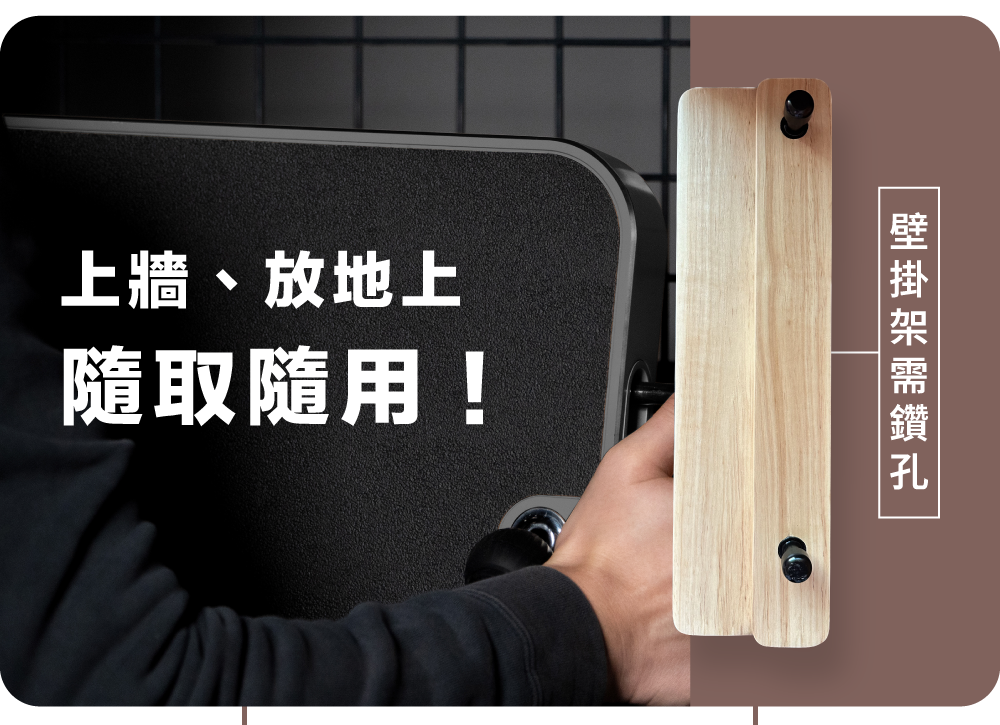 • 必須為實心牆、混擬土或磚牆,輕隔間請勿使用,若不熟悉請尋求專業技師進行施工。掛牆能承受的拉力為 306 kgf,可安心使用。