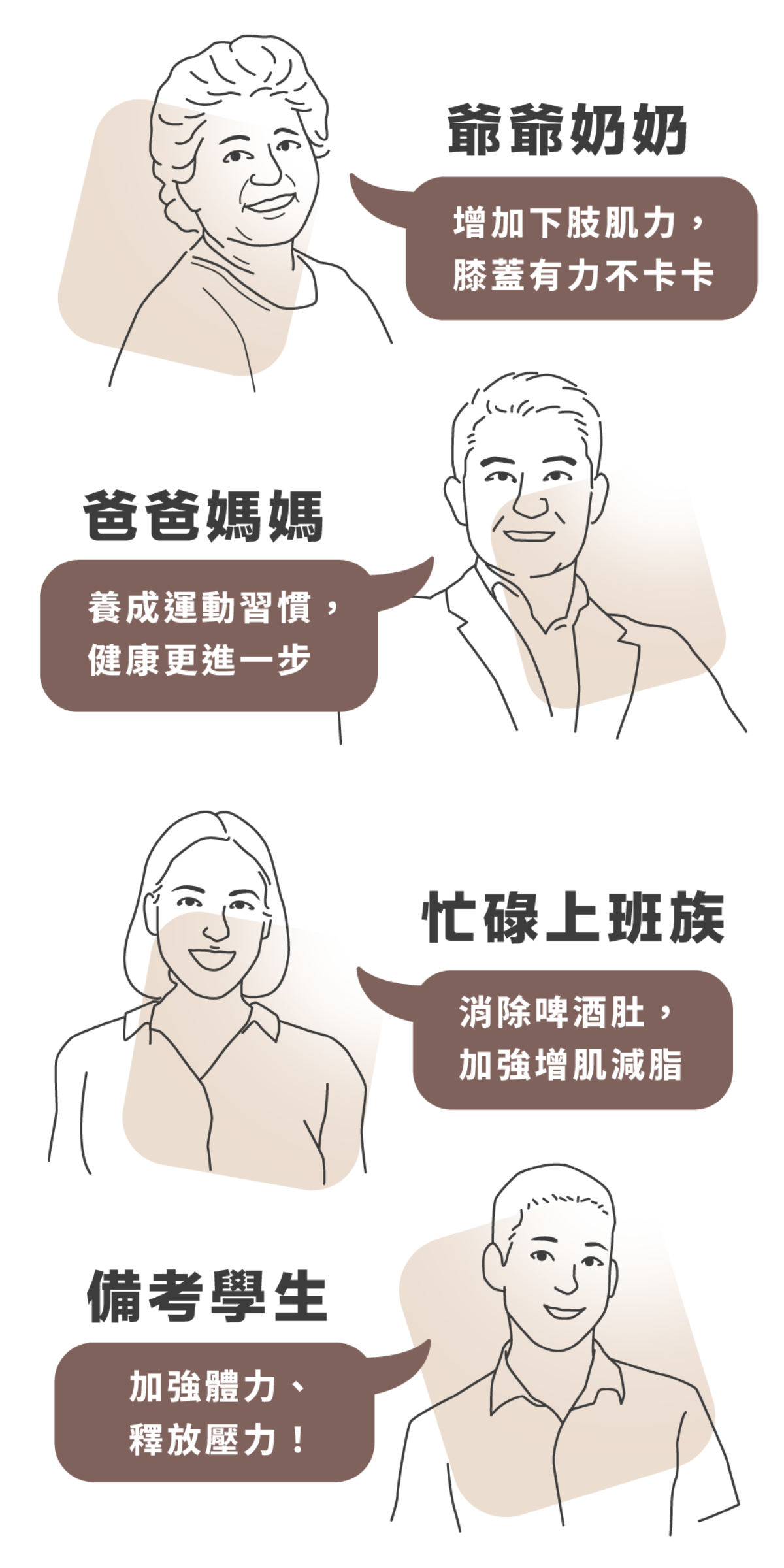 適合想提升敏捷度、身體協調度的人。透過動作的快慢來調整阻力,刺激快縮肌纖維,提升爆發力、運動表現和協調能力,通勤趕車更加從容不迫。