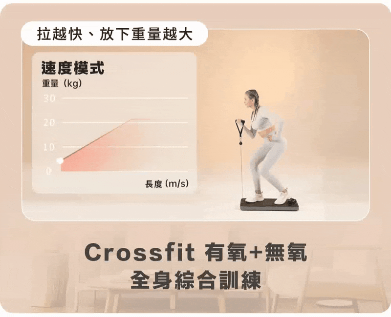 速度模式也是市面唯一 Crossfit 運動模式,結合重量訓練 + 有氧運動,一次高效動全身!