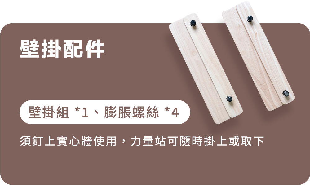🏋🏻‍♂️ 壁掛架須釘在實牆上,輕隔間不行唷!掛牆可承受的拉力約 306 kgf,掛上去收納也可以再省一點空間!