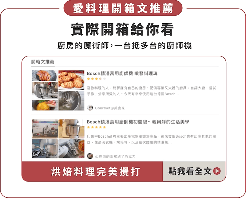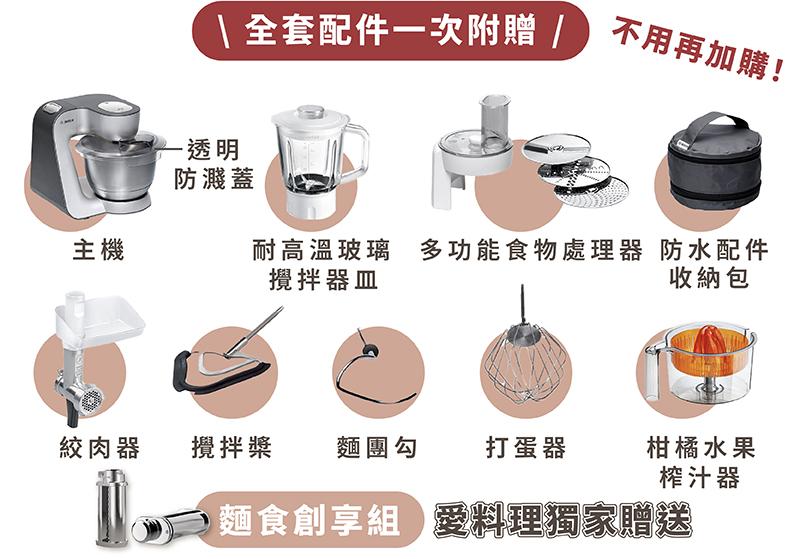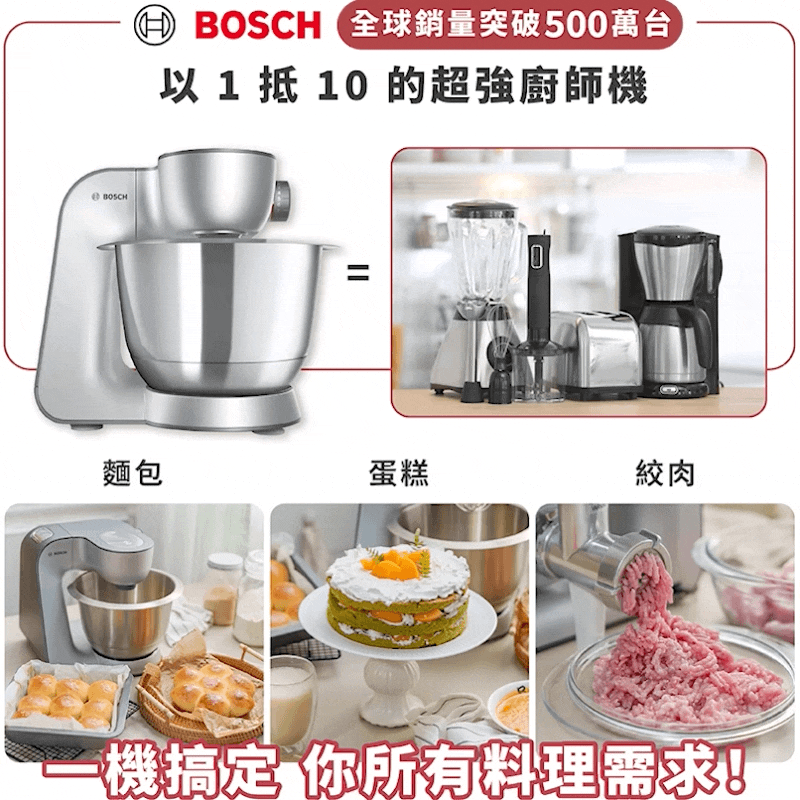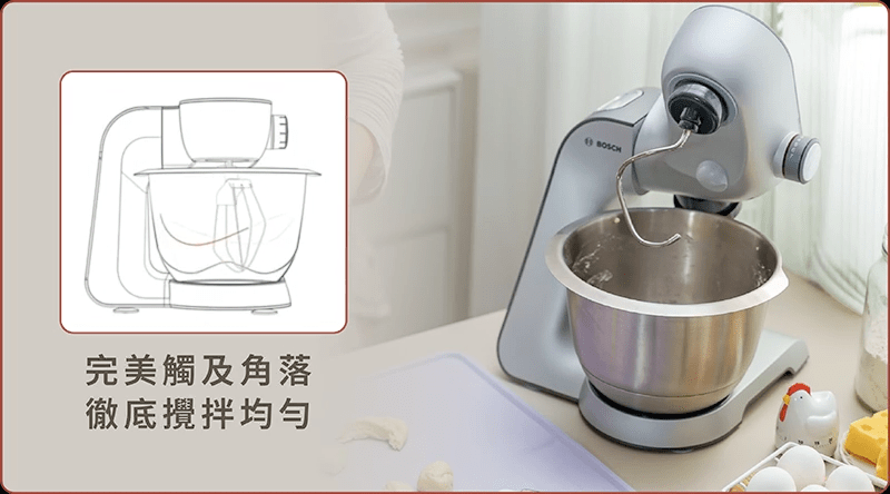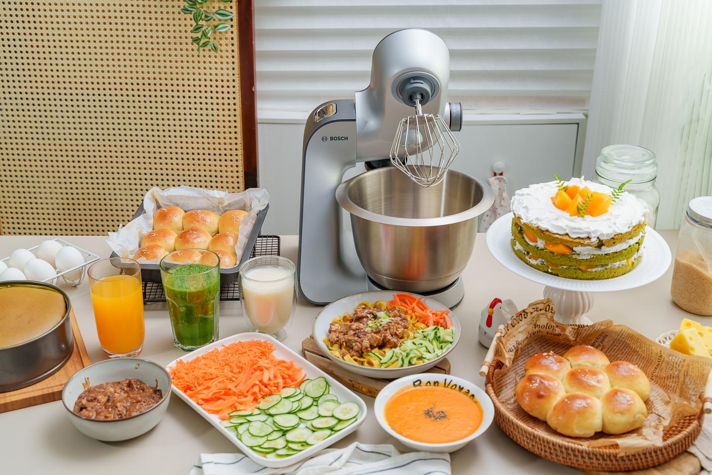 BOSCH 萬用廚師機功能超強大,使用打蛋器、攪拌槳、麵團勾,不僅可以做烘培、揉麵糰、打發蛋白、還可以做各種甜點蛋糕。
