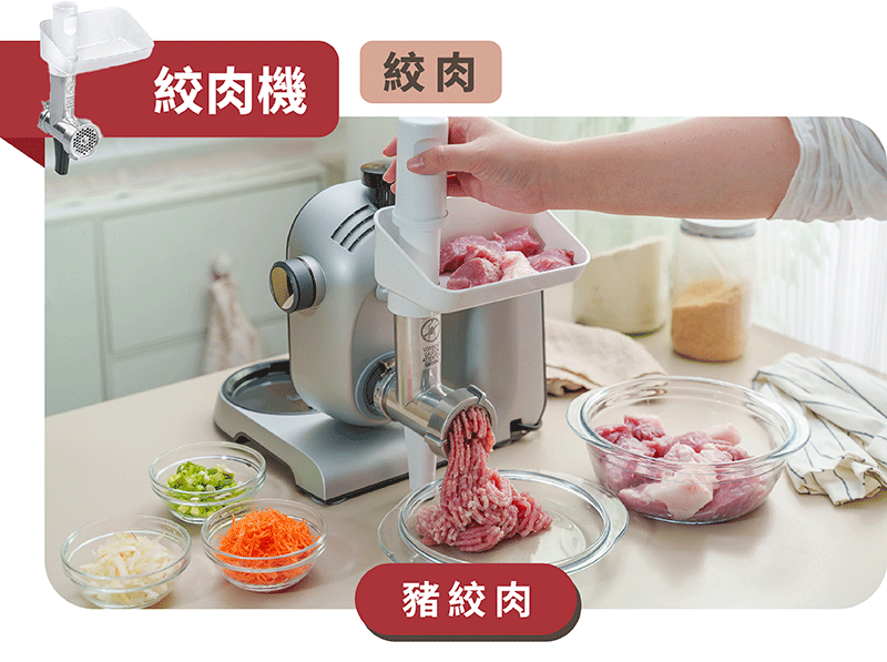 桌上型絞肉機,即使是新手也能輕鬆做出專業的料理,在家輕鬆將肉絞碎,製作各種美味料理。