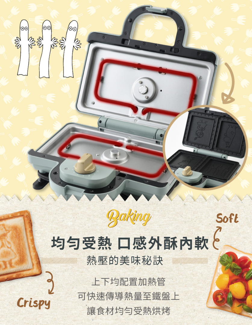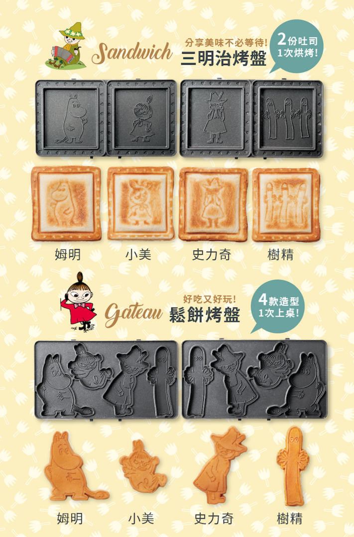 隨附兩款熱壓烤盤,經典角色萌度爆表