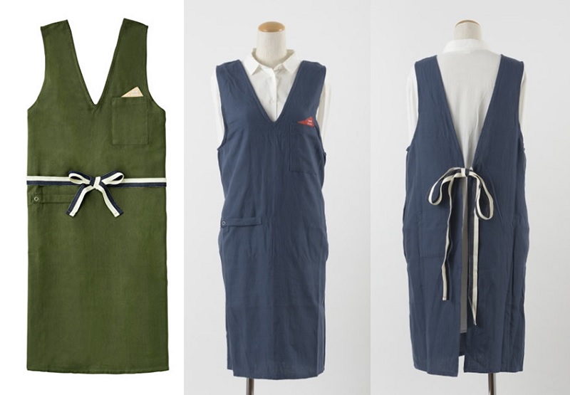 從胸到膝下長式的圍裙,標準的全圍裙,不分性別男女皆可穿。穿著圍裙時,可輕易的穿越由側邊的洞口至衣褲口袋取物。