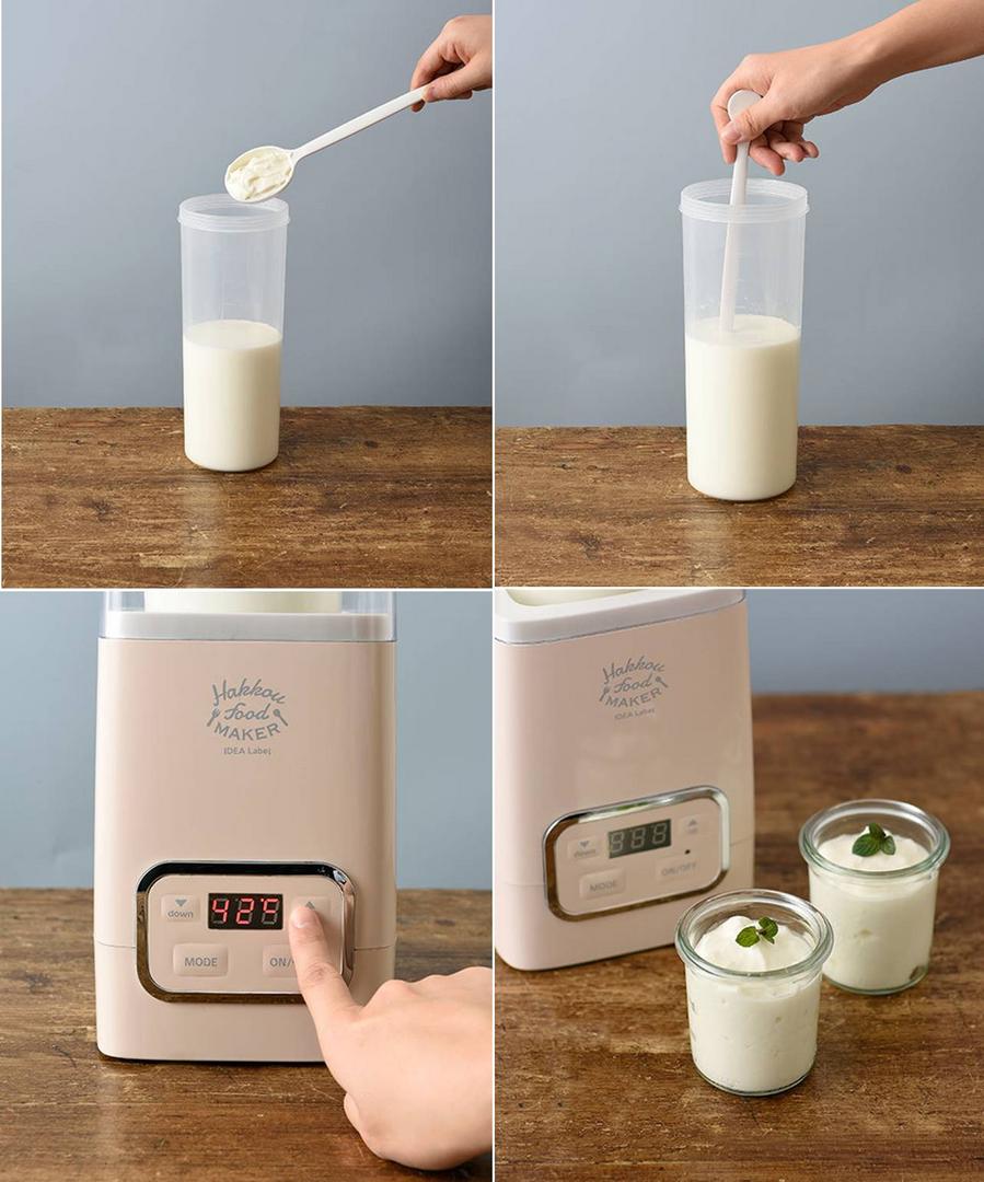 在專用容器中加入常溫牛奶及乳酪菌種(可選現成乳酪或乳酪菌粉),拌混後放入機身,溫度設定 40~42℃,時間為 6 小時,完成後放冰箱冷藏後,即可食用。