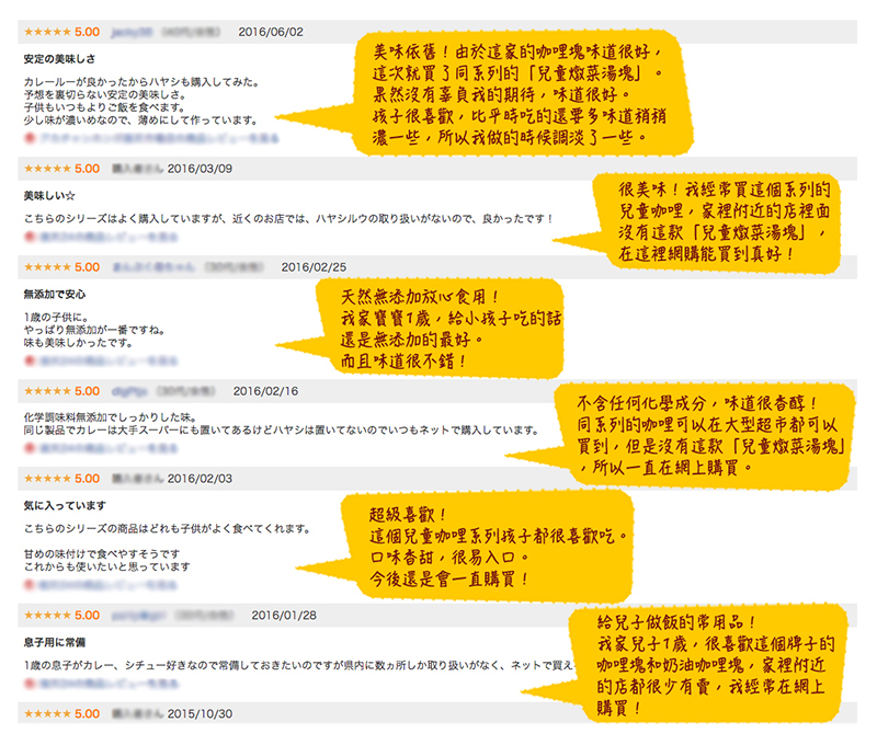 - 在「吃的選擇」書中被評為最安全的兒童咖哩塊!