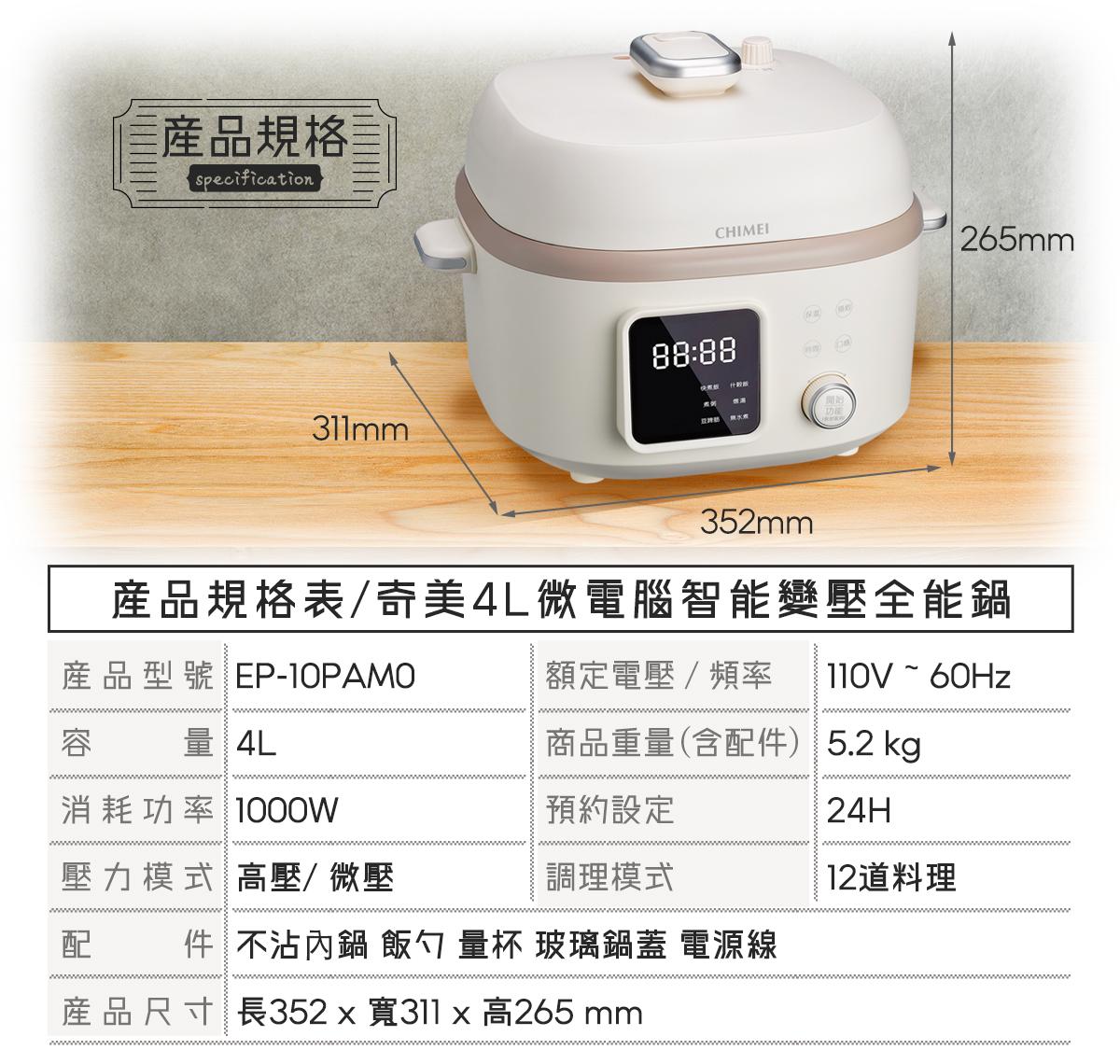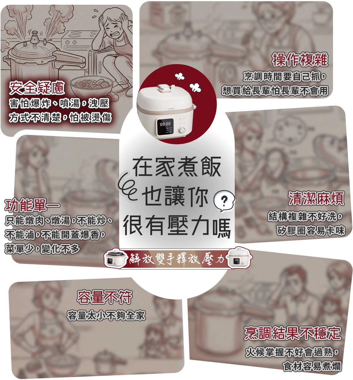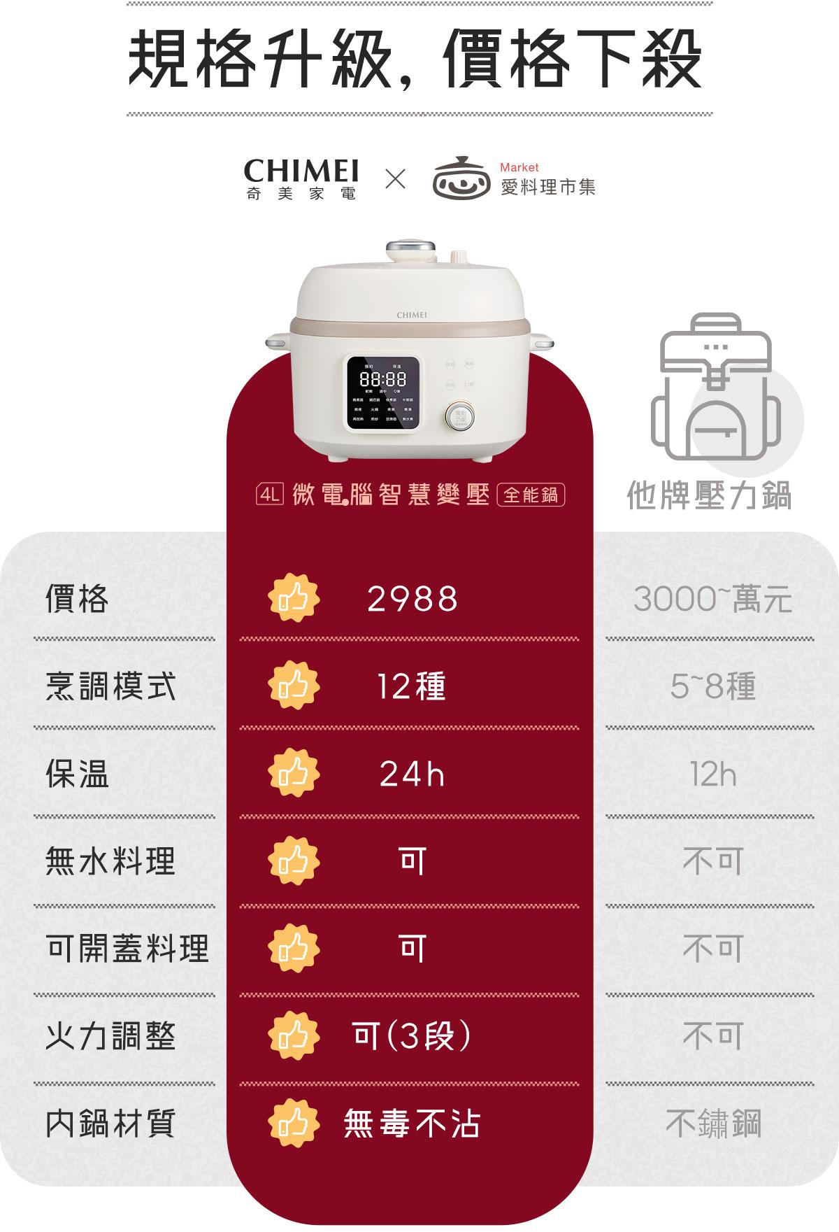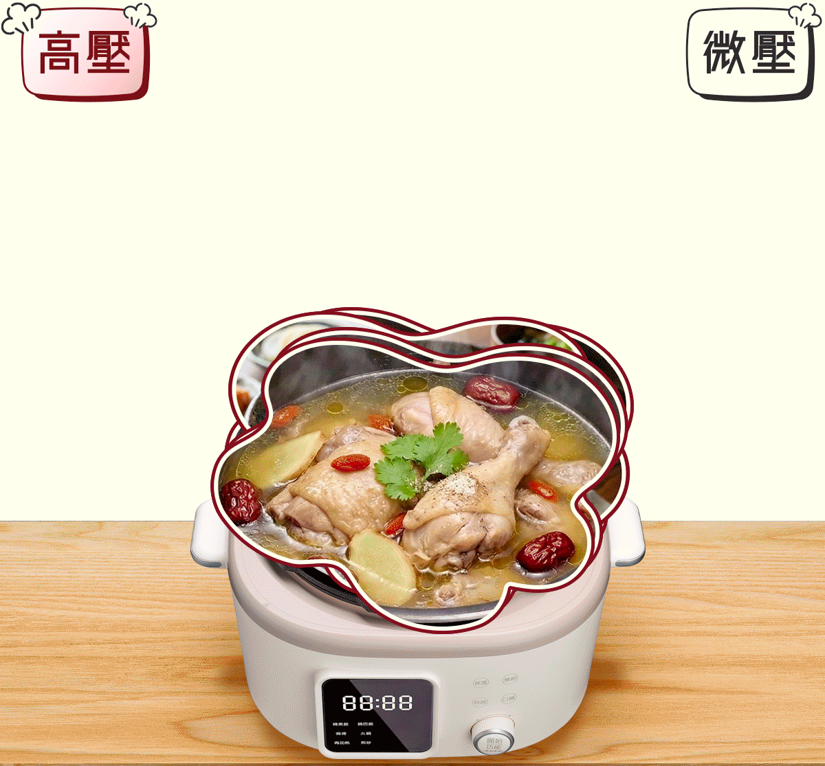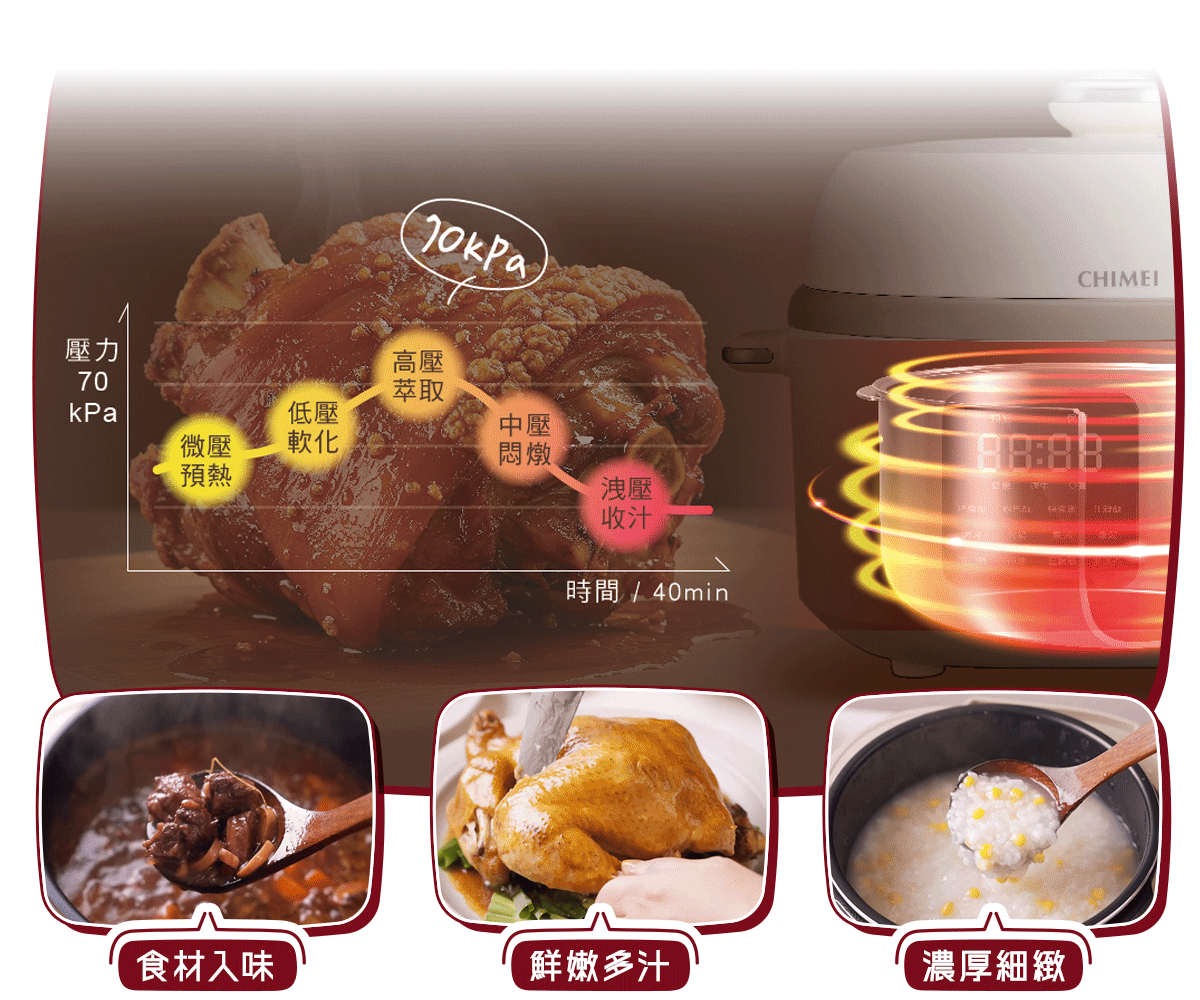 - 3 種壓力,高壓、微壓、無壓開蓋自由料理