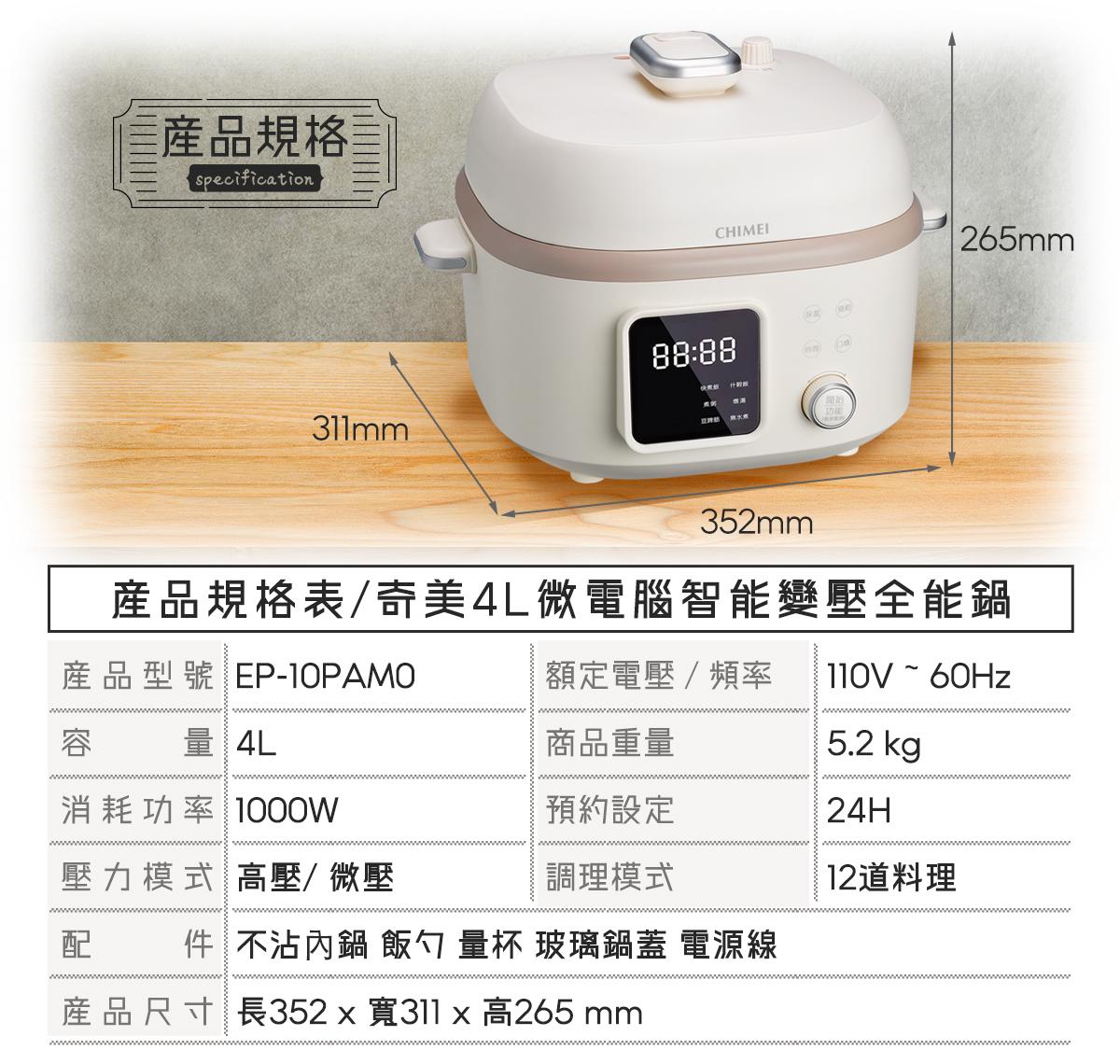 - 3 種壓力,高壓、微壓、無壓開蓋自由料理