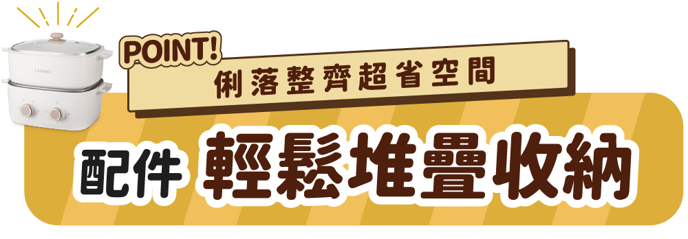 輕巧鍋體設計,收納時配件可輕鬆堆疊,比他牌更省 1/2 收納空間。