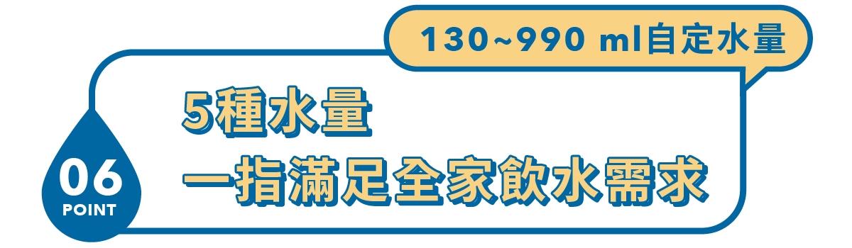 - 5 種水量設定,滿足各式飲水需求
