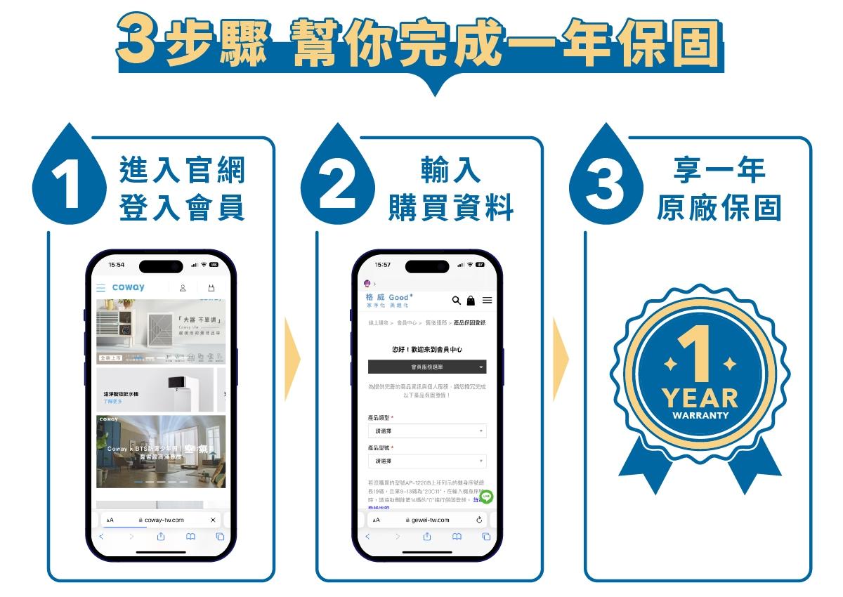 韓國原廠直產直送,台灣格威股份有限公司(恆隆行關係企業)總代理,全機提供一年原廠保固,購買產品後至官方網站登錄保固,保固期間內,任何非人為瑕疵、故障等情形,將有專人免費到府診斷、送修,不用擔心成為售後孤兒!