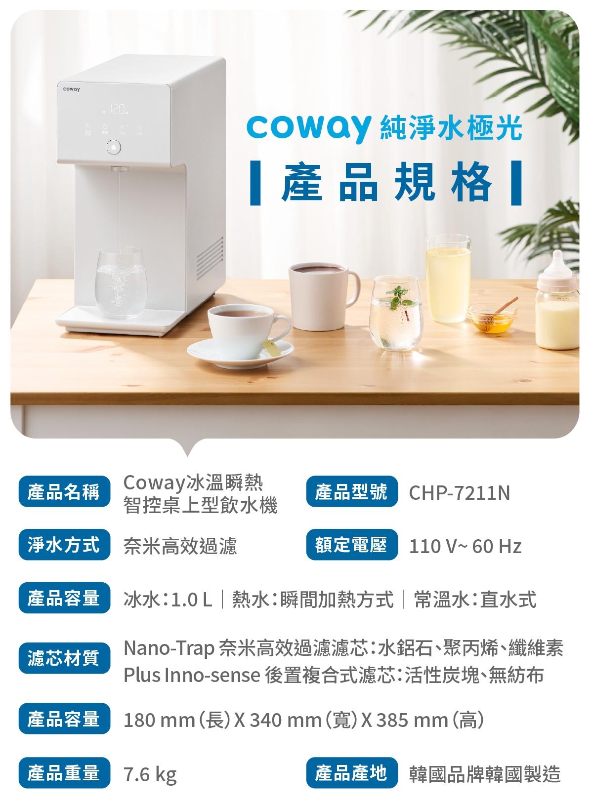 全球第一淨水器品牌,全新升級 Coway 純淨水極光!寬度縮減 8 公分,狹窄空間也可安裝使用;獨家電熱 4°C 製冷與瞬熱技術,5 秒即濾即飲無需等待;內建 6 種溫度、5 種水量設定,還可透過 APP 客製化個人設定,滿足咖啡、茶、冷/熱飲等各種日常飲用水需求;四重淨化過濾、出水口定時 UV 殺菌,水質符合最高生飲標準,多重守護飲水品質,打造最頂級的用水體驗!