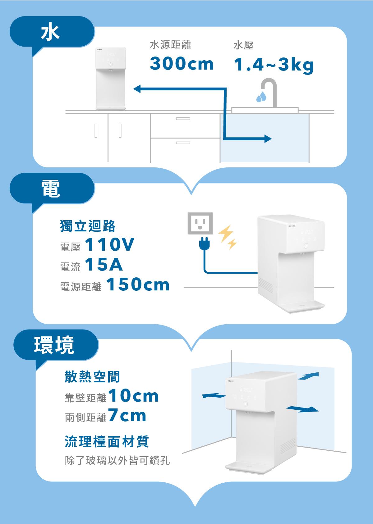 機身相較於上一代縮減 8cm,手掌寬的長度狹窄空間也可安裝使用;採用 LED 觸控面板,操作直覺簡單,搭配專屬 APP 就能打造個人的飲水管家;可拆卸的滴水盤使用清潔便利,還有熱水鎖定、睡眠省電、UV 殺菌進行指示燈等貼心設計,打造最佳飲水體驗;若出水口閘與濾芯到達更換週期,指示燈也會亮起或閃爍提醒,可再透過 APP 客服預約更換保養。