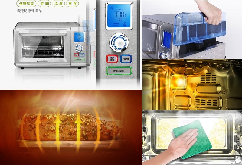 - 蒸氣與烤或烘烤功能結合,創造金黃色外觀及內層濕潤多汁的烤肉