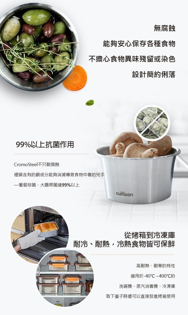 材質:盒身 304不鏽鋼/上蓋 PP、耐熱膠條、白金矽膠抗菌(歐盟食用標準)