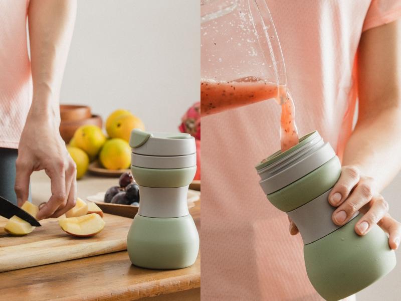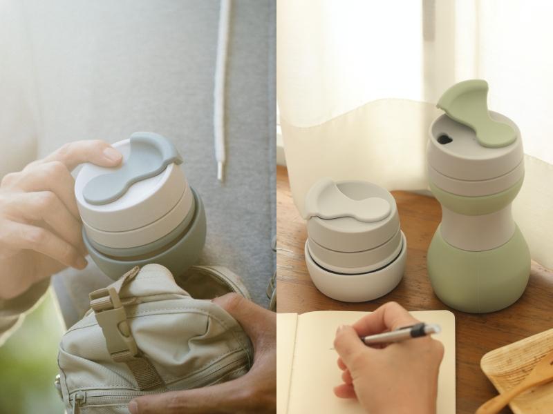 兩段伸縮式專利杯身設計,喝多變高、喝少變矮、隨心所欲;矽晶材質柔軟特性,可快速折疊,放入包包也輕巧!