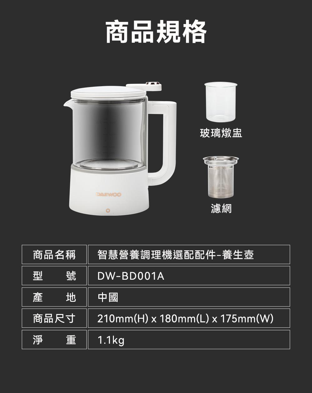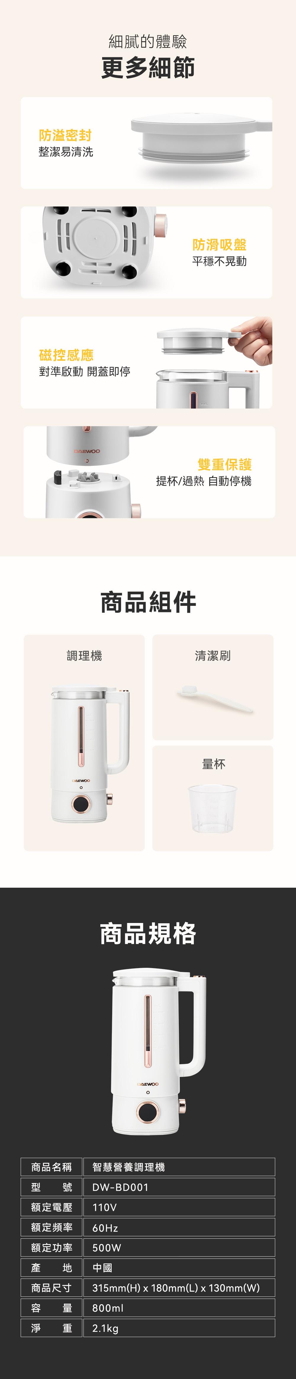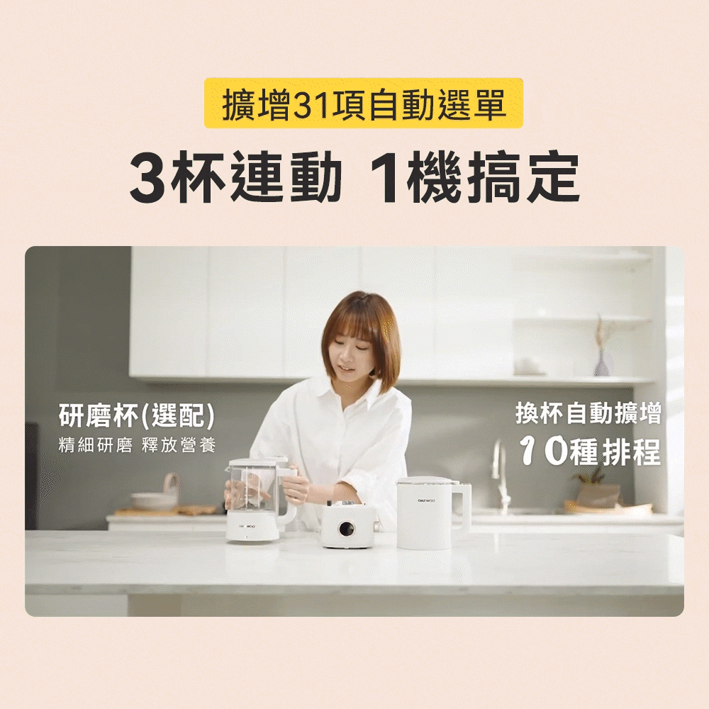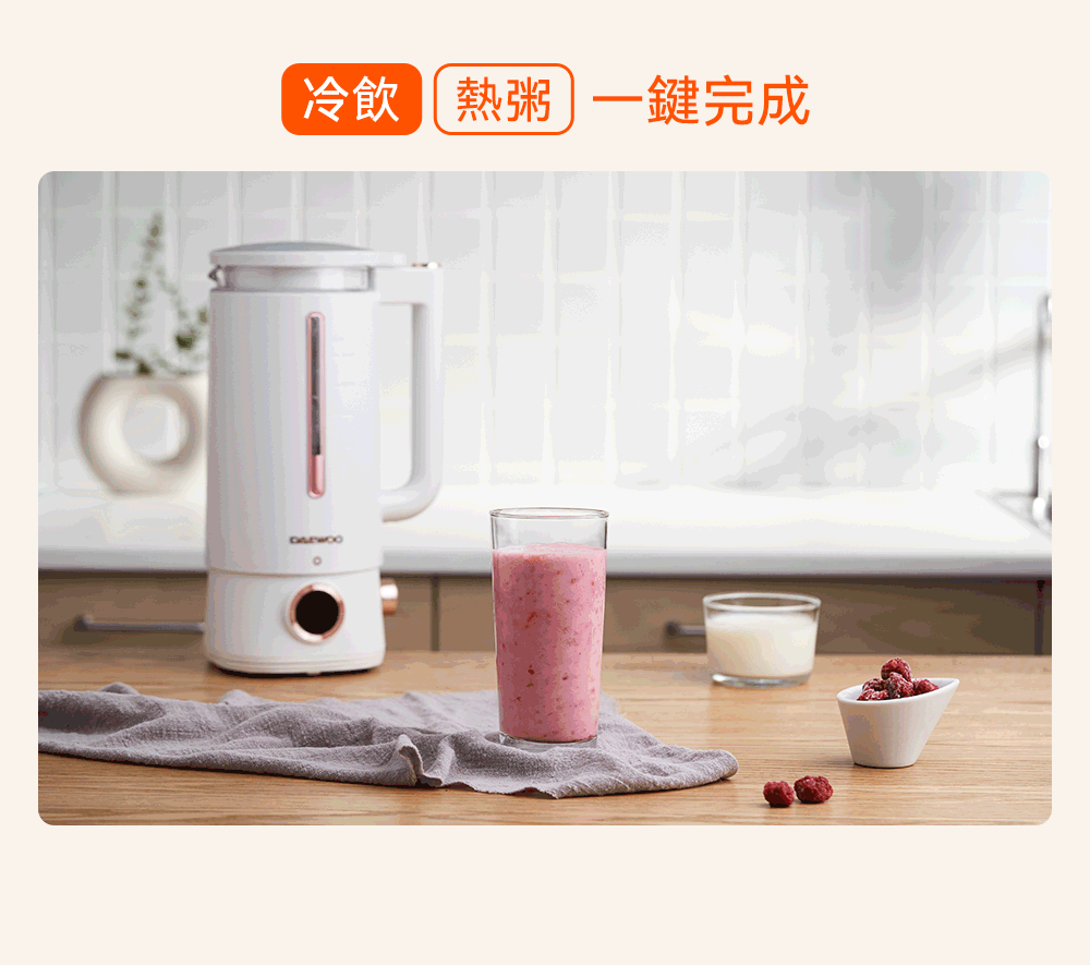 一機 8 役,擁有豆漿、副食品、五穀米漿、營養湯、粥品、鍋煮奶茶、果汁、奶昔模式,還有攪拌、清洗、預約 3 種輔助模式,微電腦智能選單,簡單直覺旋鈕設計,一鍵滿足各種需求,800ml 剛剛好容量,一次可做約 4 人份的料理。
