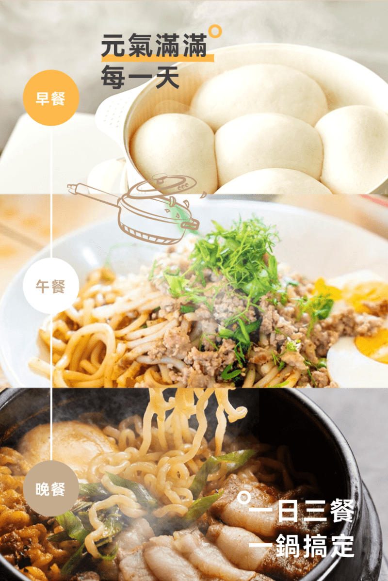 • 文火燉煮大火爆炒,3 檔溫度調節