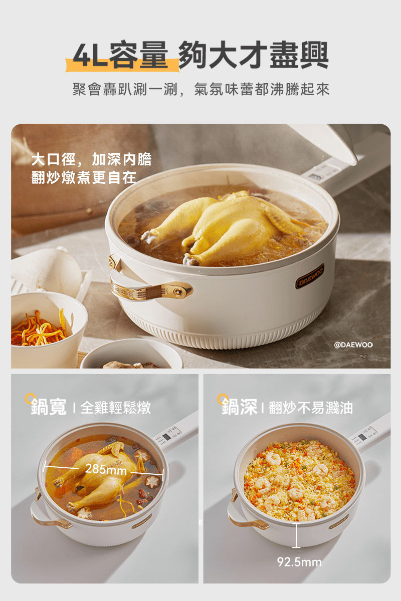 • 4L 大容量內鍋,滿足料理需求