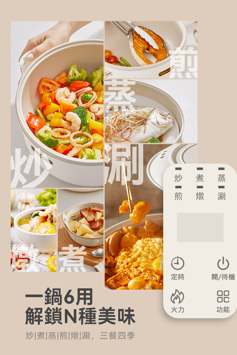• 6 種烹煮功能,一鍋享食多種美味