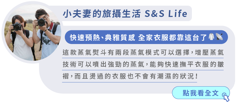 擁有平燙、掛燙兩種使用方式,兩段蒸汽調整,不挑衣料皆可熨燙;前端尖角設計,可深入細節熨燙,輕鬆撫平衣物皺褶;100ml 大容量水箱,一次可熨燙六件衣物,出門不匆忙,提升居家生活品質!