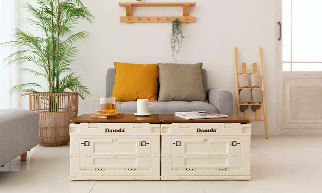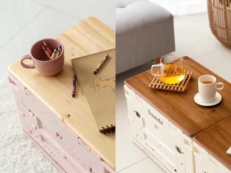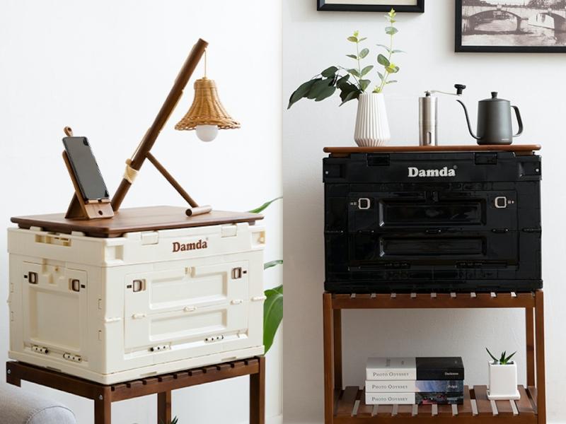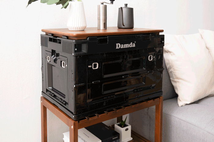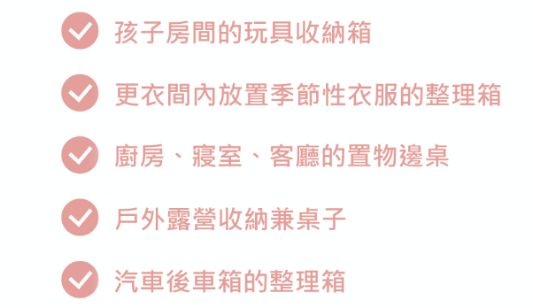 在室內可以收納用,在戶外可以當作露營、釣魚的置物箱,放上木板即可當桌面使用。
