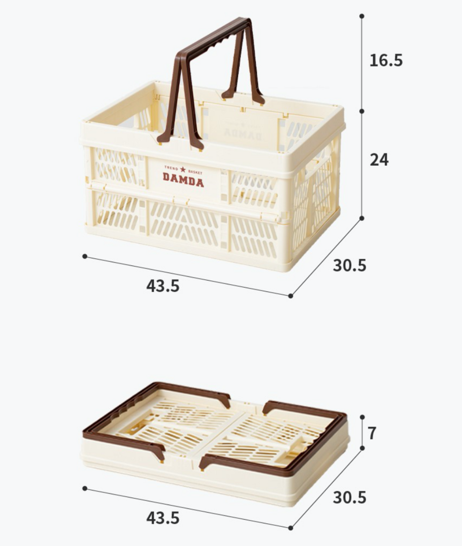 尺寸:展開後 D43.5xD30.5xH24cm/把手 H16.5cm/摺疊後 D43.5xW30.5xH7cm