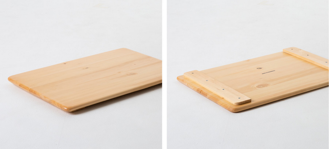 放上木頭桌版後,不僅可以當成孩子的椅凳,同時也可以變成張桌子。