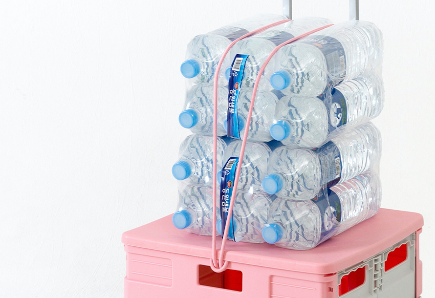 彈性很好的固定繩,可勾在購物車上,固定堆疊於上方的物品,同時增加移動時的穩定安全性。
